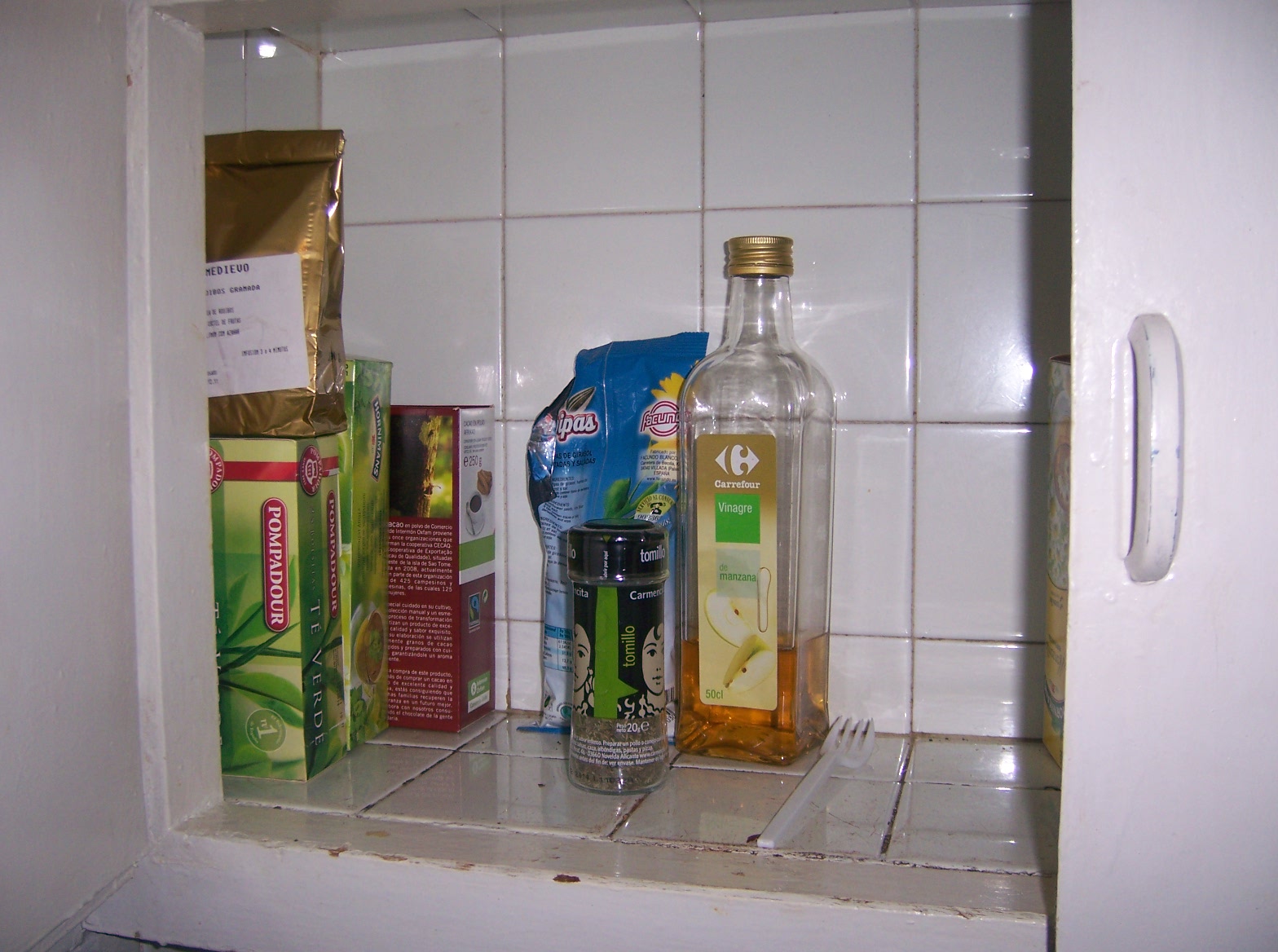 As you can see my problem was not that I only had 2.63 euros, but WHAT was I going to do with my 2.63 euros?  Well, I ended up buying two tomatoes and an apple for 49 céntimos.  And going out for a glass of wine and tapas for 1.75 on Sunday night.  But on Monday I kinda wanted the pasta salad feast.  Needless to say, none of my food went to waste this month.