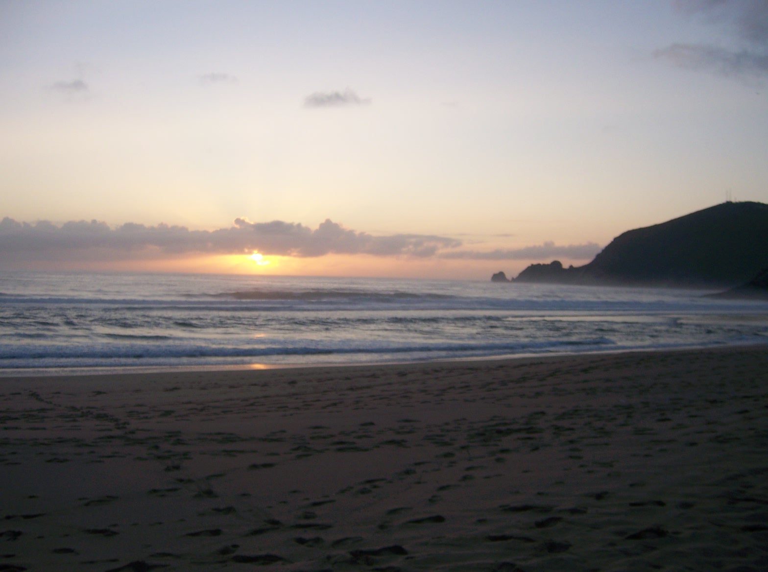 It’s funny ’cause at the moment that the sun was going down here in Fisterra it was approximately 2:40pm where you are (always 7 hours behind). And you could see the sun too (according to laws of the universe). It was sucking the life out of everything outside (I’ve heard it’s been hot there). It was filtering in, a little less fiercely, through your kitchen window and making squares of light on the table. The same sun at the same time, hitting my arms and your kitchen table.