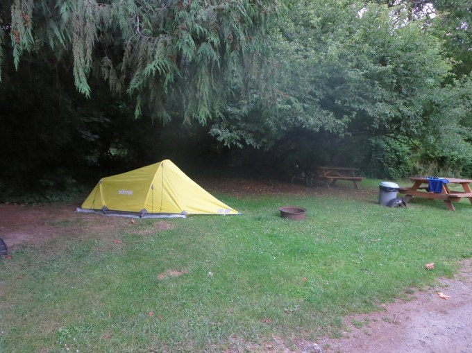 Some evenings I got nervous about not finding a campsite. You see, my days tended to go like this: leave camp between 8 and 9am, ride 20 or 30 miles, stop for lunch–which somehow turned into a read, write, talk to the retirees at the local tourist office, find a grocery store, send some mail and suddenly it was 3pm and I was like, I’ve only gone 30 miles today?! So I’d try to get 40 or so done in the afternoon. More often than not I was riding through sunset. A few times I rode in the dark. But I had lights on my bike and it worked out okay every time.