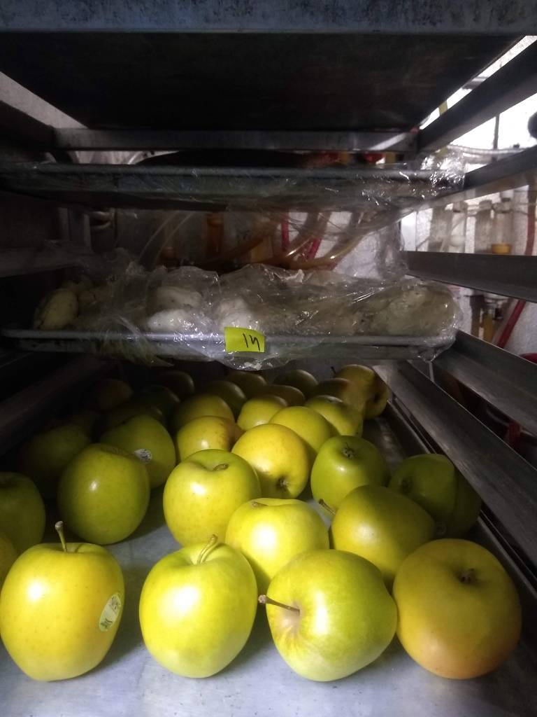 At the restaurant the lights were low. Fridges were empty and turned off. Trash cans were bagless and stacked. She told me I could grab food from the walk-ins if I wanted. “There’s not much left,” she said. But my eyes widened when I entered the veg walk-in: size of a small bedroom. Apples, oranges, kale and carrots. In the meat walk-in: bacon, milk and eggs for days. Take whatever you need. I don’t know how to explain or even describe how it felt being alone in that cold basement closet, filling my single red pannier with crisp green apples and ripening oranges. It felt desperate. And apocalyptic–I’m danger of overusing that word these days. How else can I describe it? It felt momentous. Once in a lifetime. A little primeval. A little…animalistic?
