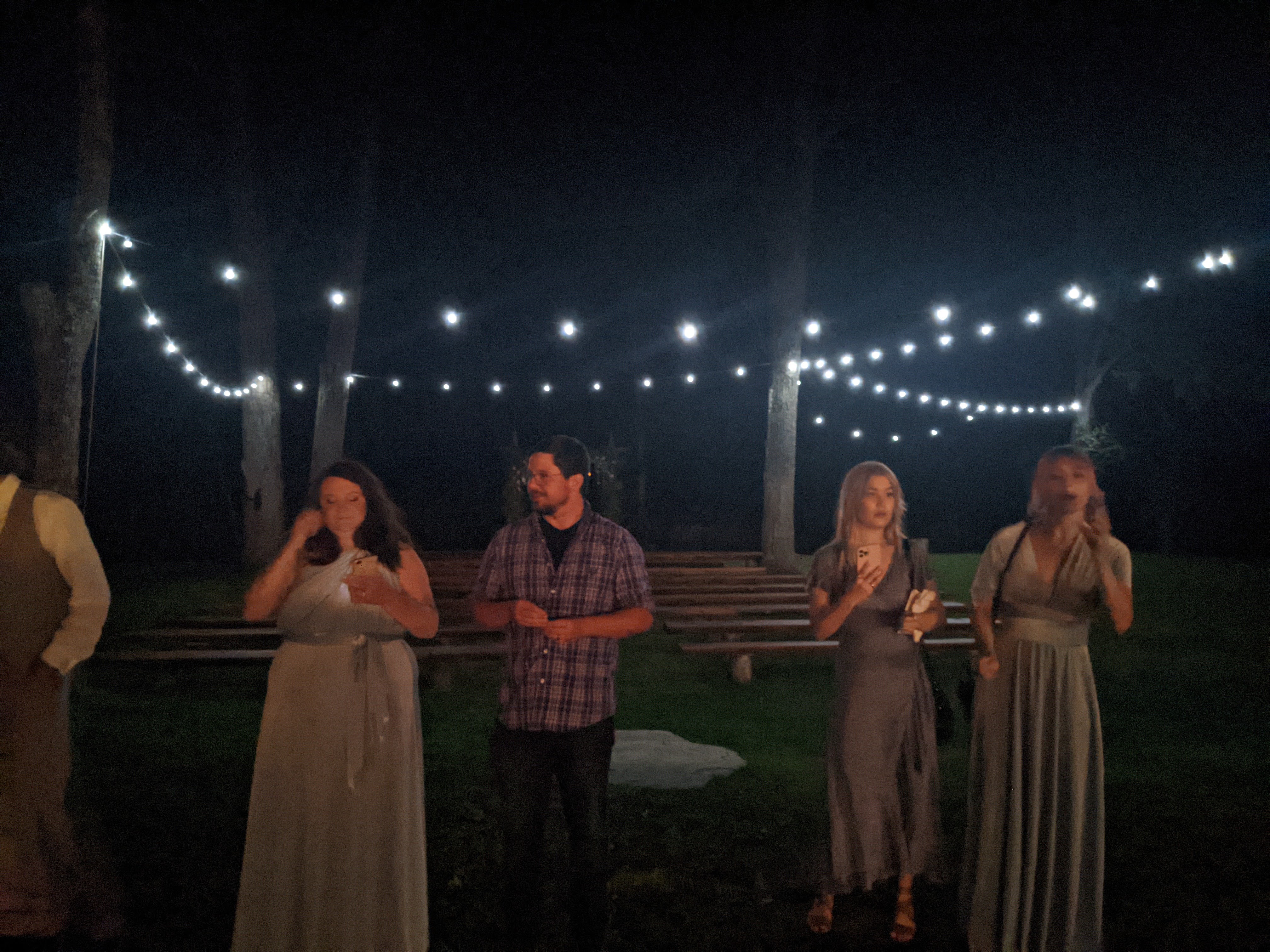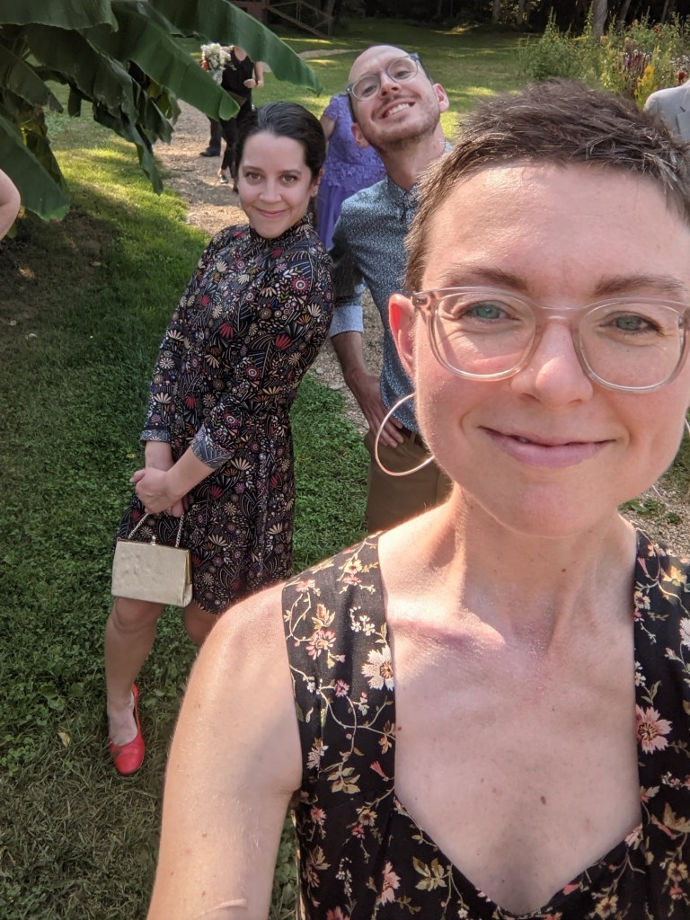 I went to a wedding this weekend. It was outside under very tall trees. They served drinks out of a vintage trailer. I caught the bouquet! It came right to me and never hit the ground. The music was really loud so we smiled at each other, danced a little, and leaned in close to talk. The bride was a star. She wore glittering white. She came over to us and said thank you for coming! And I was so flustered. I said, oh my god…I mean…thank you…!