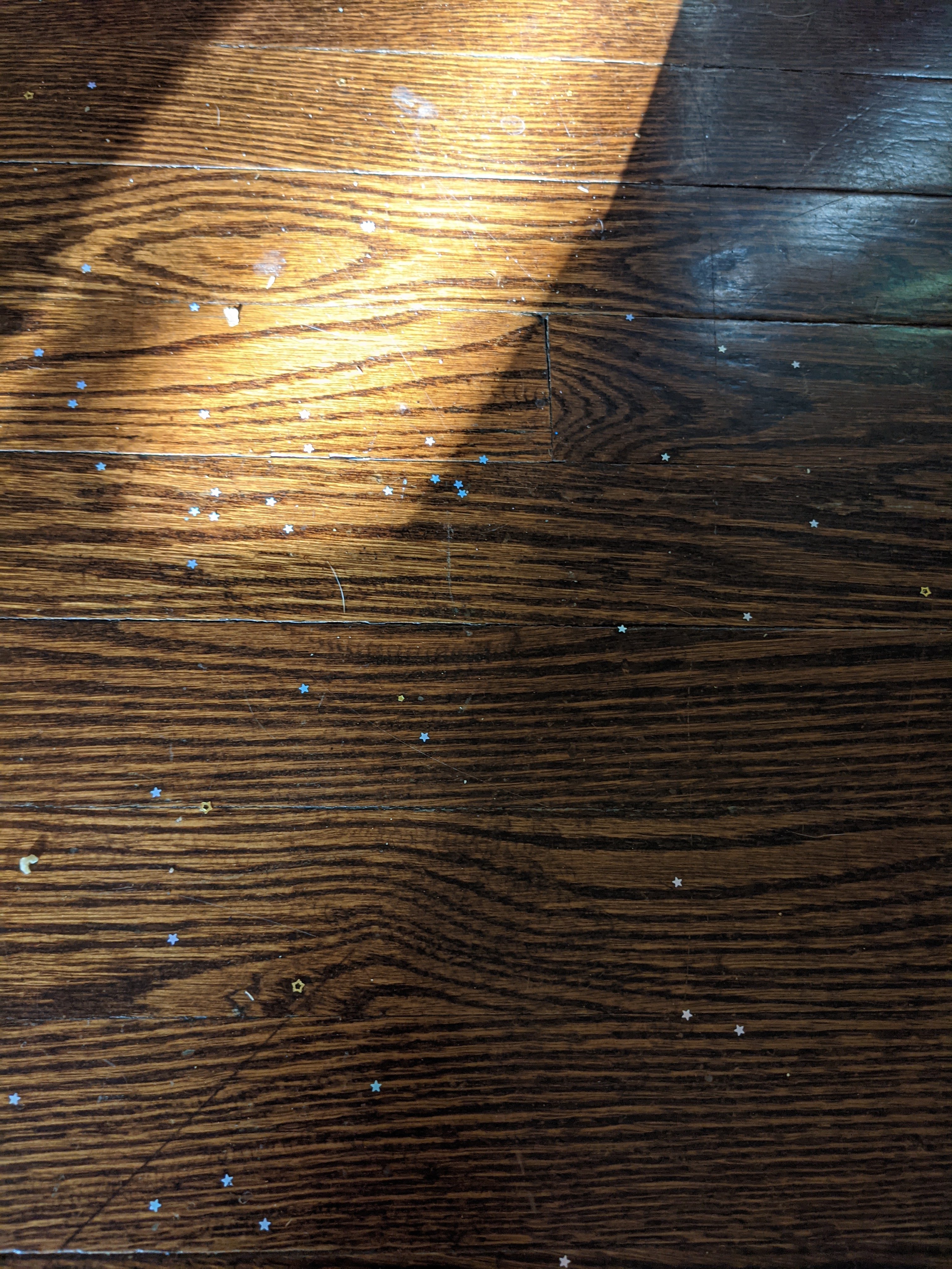 One year when I lived in New York City my roommates and I agreed to have glitter at our New Year’s Eve party. One roommate in particular was the glitter lobby and I of course did not need to be lobbied but a few other roommates did. The allowance of glitter was a big concession. I do not remember exactly how the glitter got to the party or when. But I remember after everyone left I sat on the floor in my black tights and my black dress and observed how the glitter had conquered all corners. It blanketed the hardwood floors, the couch cushions, even the bathroom vanity. I pressed my hand on the floor and drew up a palm of glitter. In awe of the chaos we’d sowed.